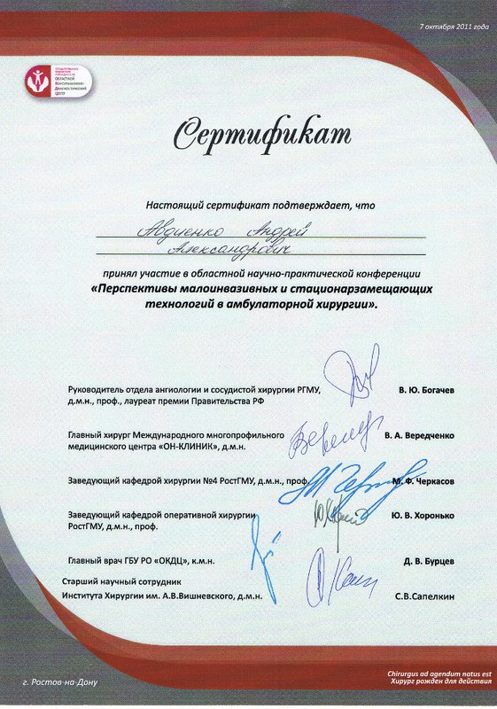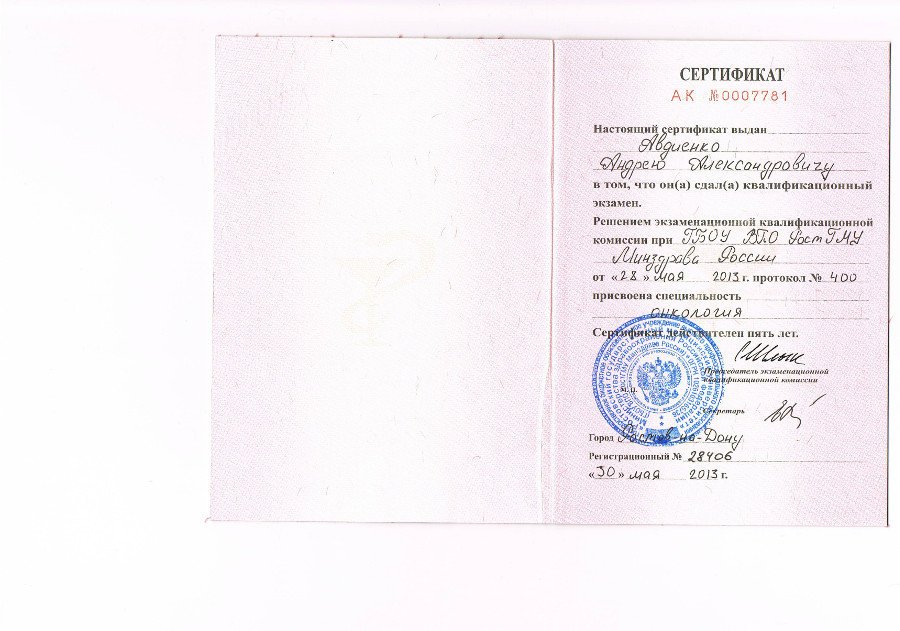 Прежде всего я довольна профессионализмом Андрея Александровича Авдиенко, который выражается в том, что он поставил правильный диагноз и затем провёл мне операцию из-за серьёзного заболевания. Неоднократно обращалась, он всегда выслушивал, давал абсолютно верные советы, компетентные ответы на вопросы. Для меня очень важно, что я предварительно созваниваюсь с Анастасией и она назначает время, не приходится высиживать часами, принимают строго. После операции приезжала совершенно бесплатно.