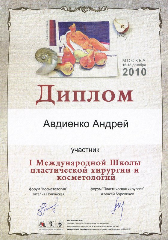 Врач хороший и сотрудники у него отличные. Доктор Авдиенко провел отличную консультацию и работу, все замечательно. Делали маме пластику груди.